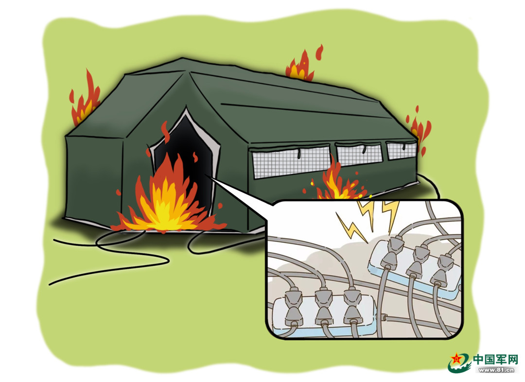 帐篷里注意用电安全,禁止私拉乱接电线,杜绝安全隐患。