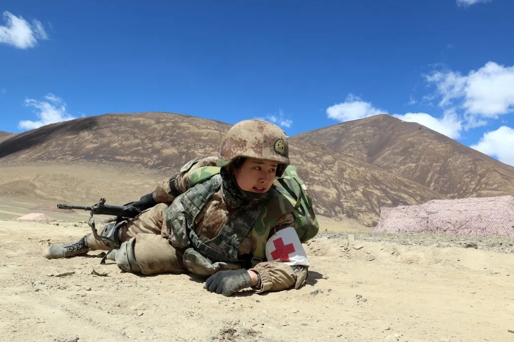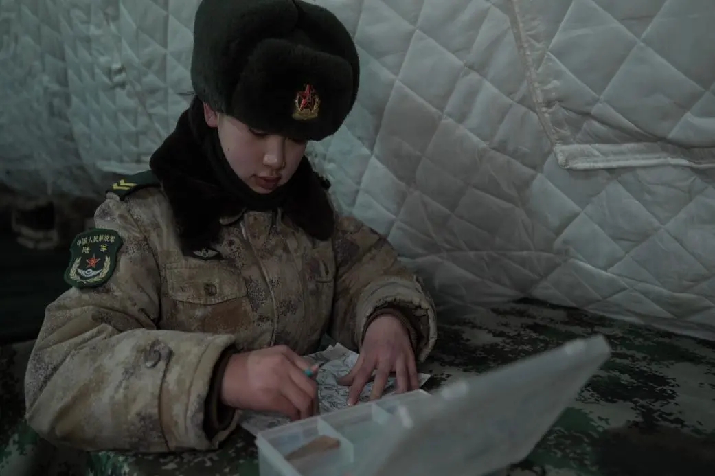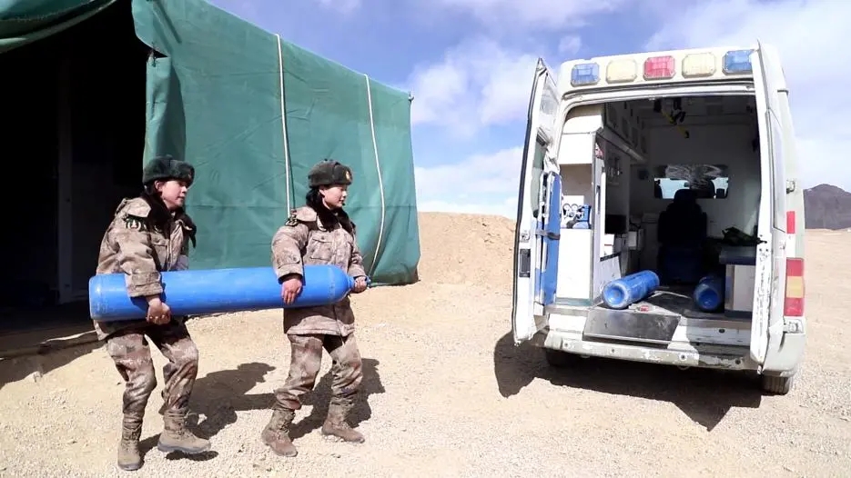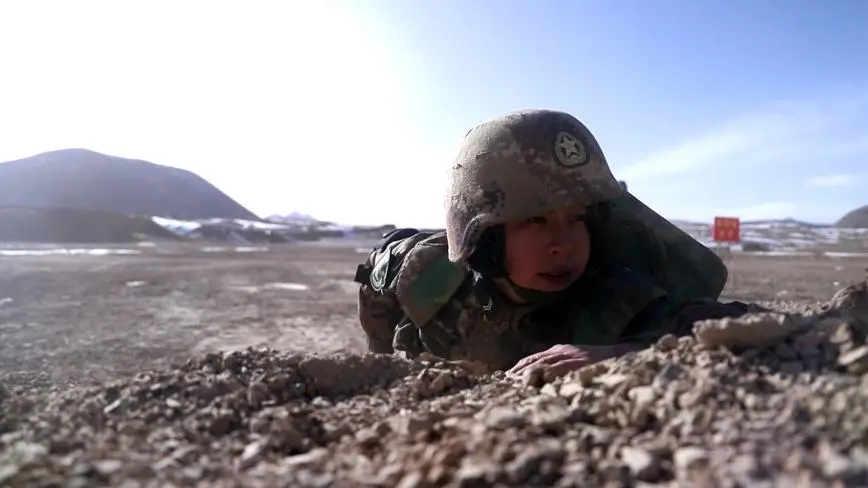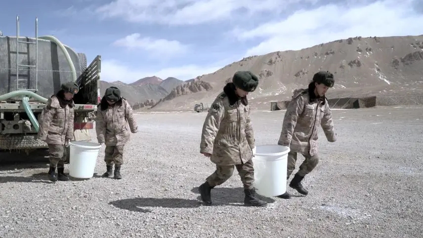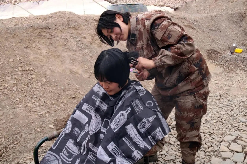 女兵袁明利在康西瓦烈士陵园擦拭墓碑