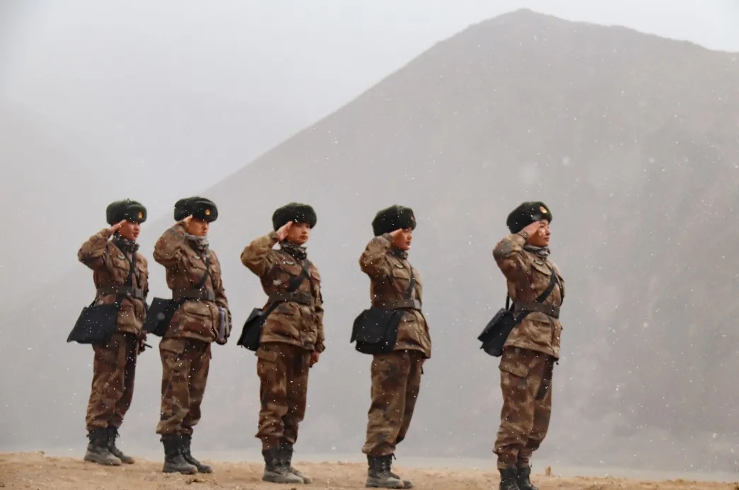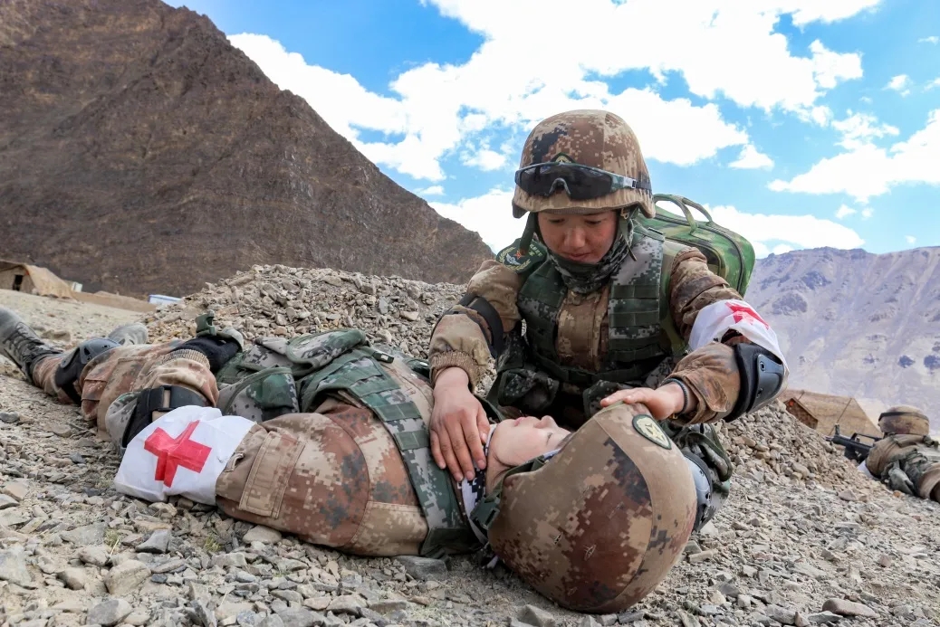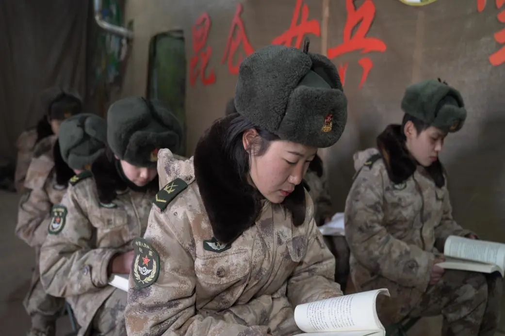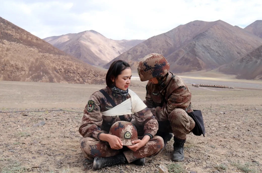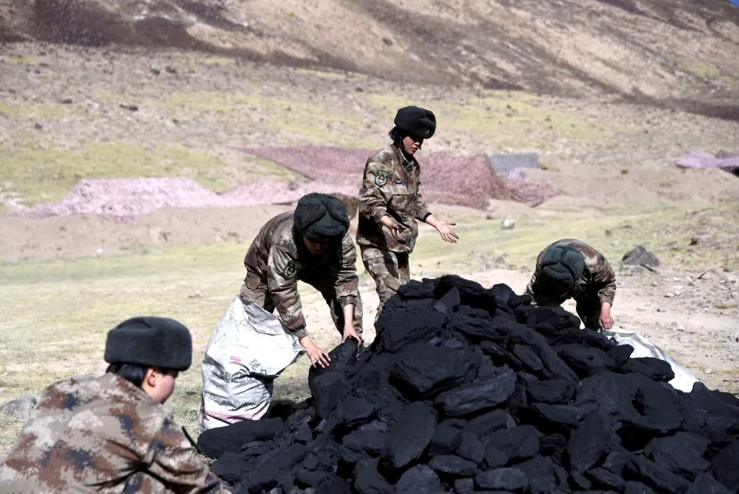 女兵袁明利在康西瓦烈士陵园擦拭墓碑