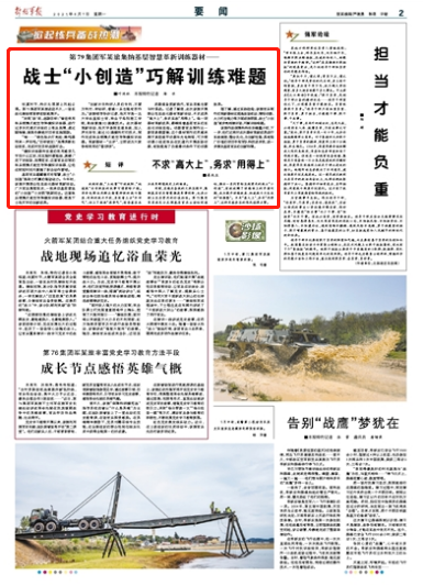 据了解,通过实践检验,该旅官兵制作的革新器材在提高战场机动、情报侦察、火力打击能力等方面成效明显,战士“小创造”逐步亮相演训场,巧解训练难题。