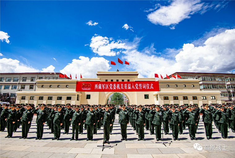 面对鲜红的中国共产党党旗,军区张学杰政委高举右拳,带领军区党委机关全体党员同志庄严宣誓:“我志愿加入中国共产党,拥护党的纲领,遵守党的章程,履行党员义务,执行党的决定,严守党的纪律,保守党的秘密,对党忠诚,积极工作,为共产主义奋斗终身,随时准备为党和人民牺牲一切,永不叛党。”铿锵有力的誓言响彻长空,郑重宣示了西藏军区党委机关和部队官兵更加紧密地团结在以习近平同志为核心的党中央周围,坚持以习近平新时代中国特色社会主义思想为指导,深入贯彻习近平强军思想,忠实履行固边稳藏历史使命,阔步雪域强军新征程的坚定信心和决心。