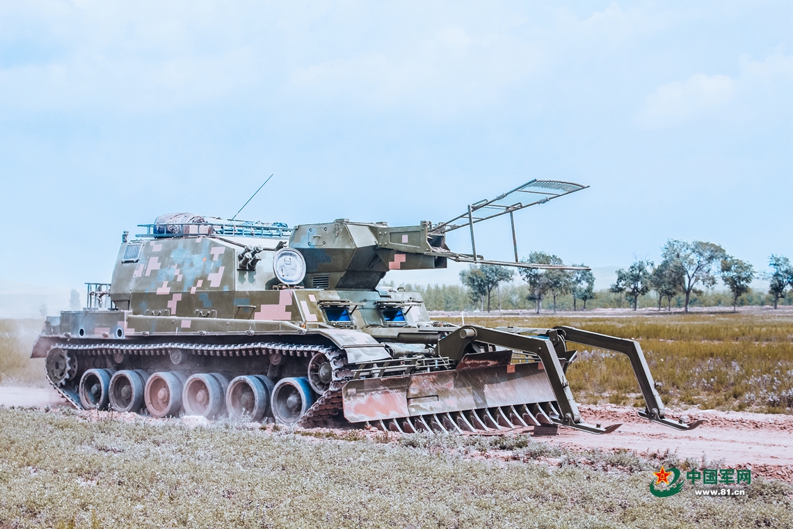 “前方遭遇敌雷场,请求排雷作业!”履带式综合扫雷车闻令而动。“嗖——”车载火箭爆破器如一条火蛇飞向长空,精确落至雷场中央引爆地雷,驾驶员打开扫雷犁拓宽通路。