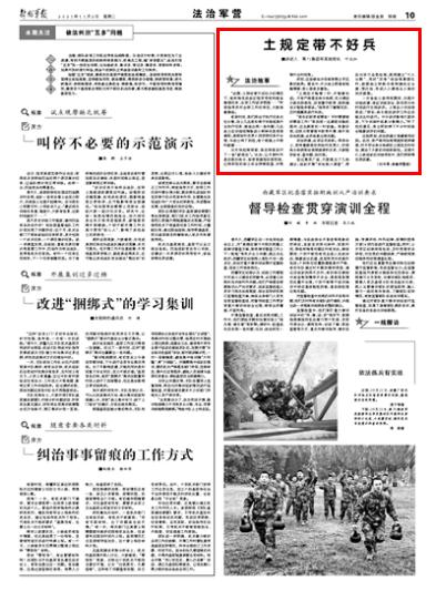为尽快扭转局面,我在排里实行了一些“新规定”。比如,让不按时作息的班抄条令,给受到通报的班罚岗,让闹别扭的战士在全排做检查、并限制外出时间等。