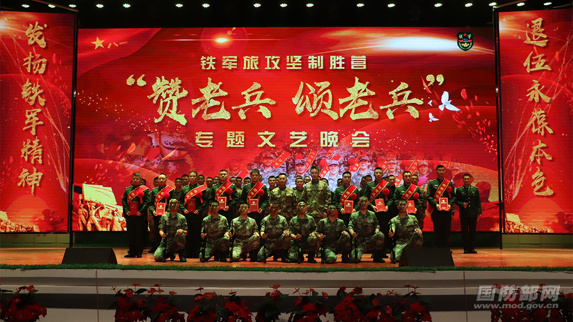 退伍晚会上,退伍老兵们的团结协作、真诚相待,以及建功军营的强军斗志通过一段段暖人心扉、鼓人斗志的颁奖词,一部部精彩的视频短片刻进在场官兵的心中,让退伍老兵们和留队战士们热泪盈眶。老兵们没想到,单位精心搜集了这么多资料,给自己最后的军旅生涯留下难忘回忆。留队战士们慷慨激昂:“我们要向退伍老兵们学习,立足岗位、再建新功。”