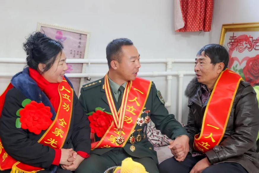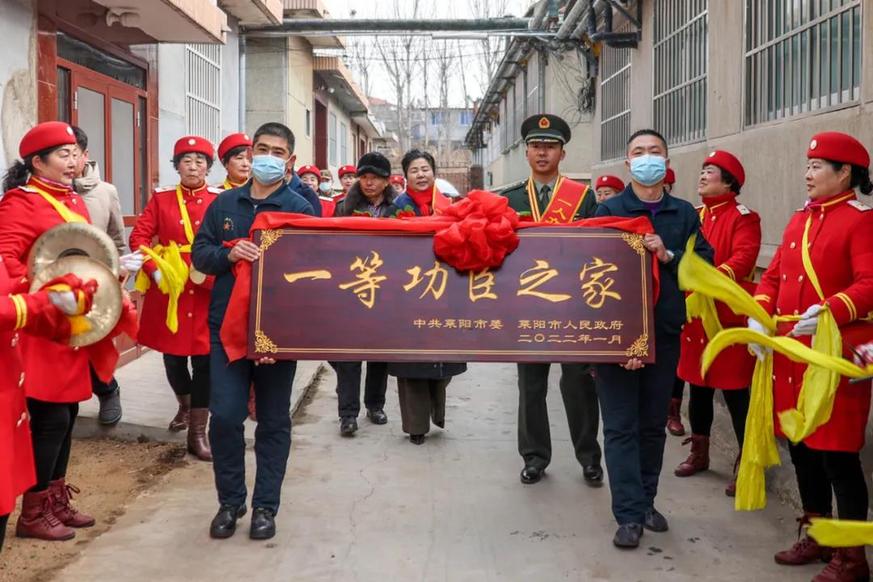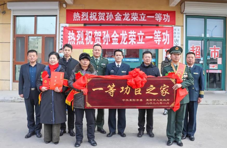 送荣誉到家乡:军歌嘹亮擂战鼓,鲜花簇拥赞功臣。1月24日,山东省烟台市河洛镇唐家湾村迎来一件喜事——第71集团军某旅携手当地党政机关和国防动员系统,将“济南英雄连”连长孙金龙的一等功立功喜报送到家中,并为其家庭颁发“一等功臣之家”牌匾。