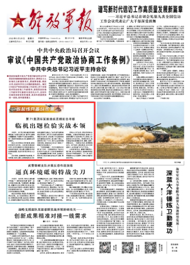 解放军报讯 刘仁浩、特约通讯员高骏峰报道:“右前方发现‘敌’装甲车,瞄准手测量距离!”初夏时节,皖东密林深处,第71集团军某旅炮兵分队直瞄射击考核展开。