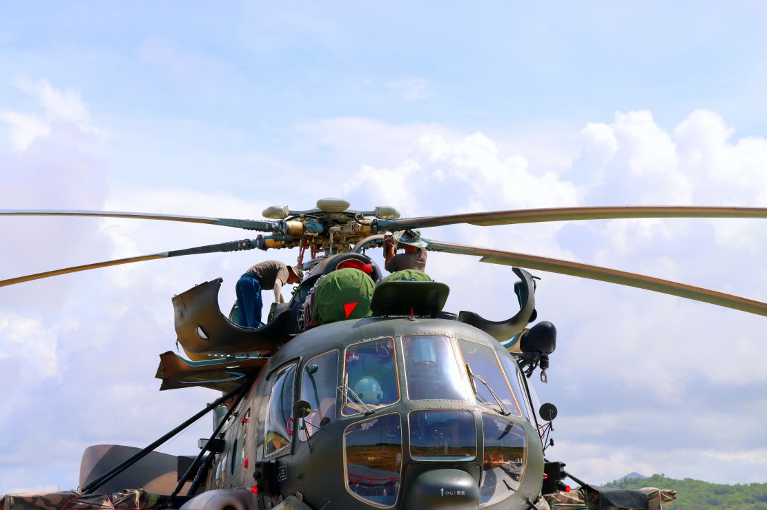 随着桨叶缓缓转动,机务人员对飞机做放飞前的最后一次检查,确保飞机能最高质量的完成飞行。