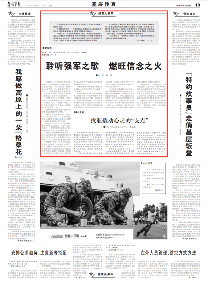 “大脑不是一个等待填满的容器,而是一支需要点燃的火炬。”尤其应对时代发展的新变化、官兵构成的新特点,思想政治教育必须不断创新方法手段。只有从理论与实践、事实与道理的结合上去讲授,方能在春风化雨、润物无声中达到铸魂育人的目的。