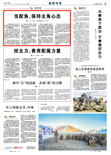 下连之初,听闻单位配发的某型侦察无人机是行业顶尖装备,小赵十分兴奋。可几次演习下来,他发现自己连队不是配属合成分队先期侦察,就是配属火力分队捕捉炸点。看着不远处坦克连的“铁疙瘩”卷起漫天烟尘,小赵感觉自己仿佛矮人一等:“装备先进又如何,主力永远是别人。”