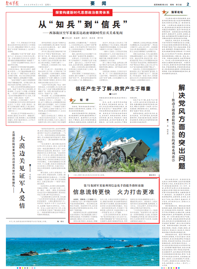 某型火炮列装后,该旅成立课题攻关小组,从理论改装和实装操作出发,围绕目标侦察、射击指挥等重难点课目展开专攻精练,推动新型指挥信息系统与实战化训练有机融合。经过一段时间的探索运用,有效提升了指挥控制、态势共享、作战协同能力,进一步贯通“侦、控、打、评”链路。
