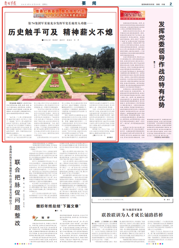 记者了解到,自第二批主题教育开展以来,这个旅注重发挥军史长廊育人功能,将学习军史与弘扬部队优良传统相结合,用红色基因打牢官兵思想根基,进一步激发官兵精武豪情。