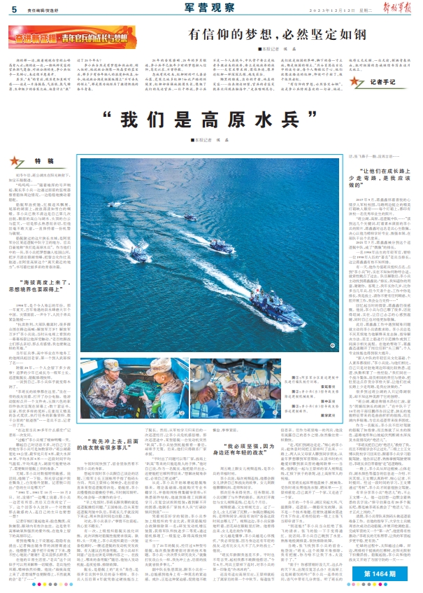 “班公湖,高原,巡逻艇中队……”读到这几个关键词,盯着素未谋面的李小兵的照片,蒋鑫鑫对这名老兵心生敬佩,决心以他为榜样学好专业、练强本领,在部队干出个名堂来。