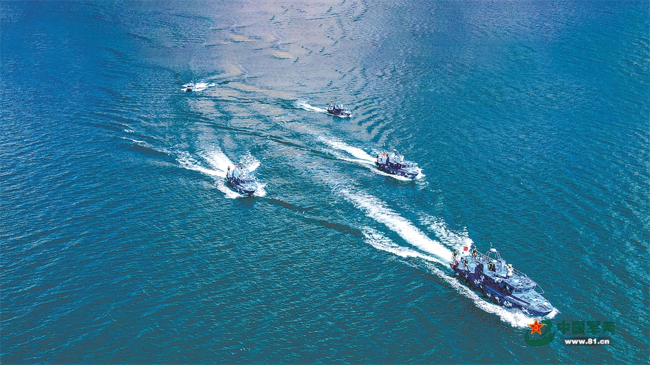 阿里军分区某巡逻艇中队进行编队航行训练。索延客摄