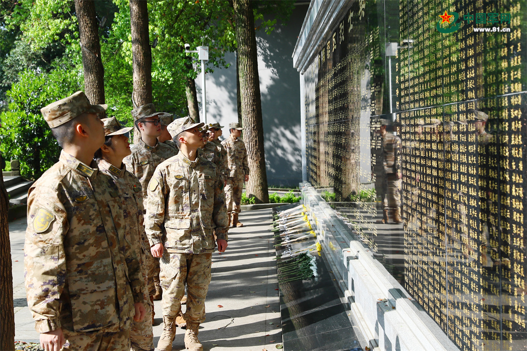 陆军特色医学中心赴邱少云烈士纪念馆开展现地教学活动,军人和文职人员瞻仰烈士英名墙。万衷余摄