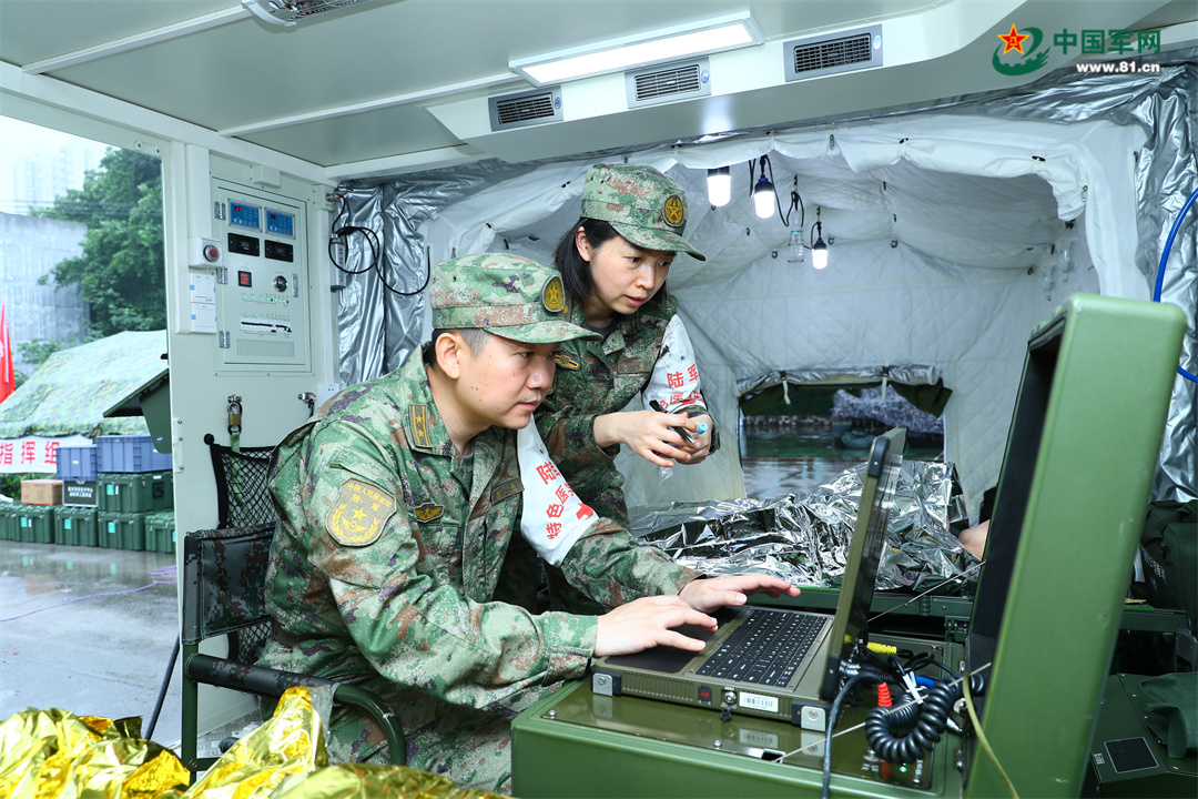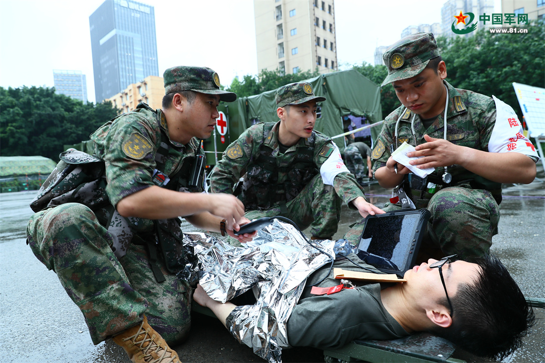 陆军特色医学中心卫勤骨干结合遂行任务展开多科目演练。万衷余摄