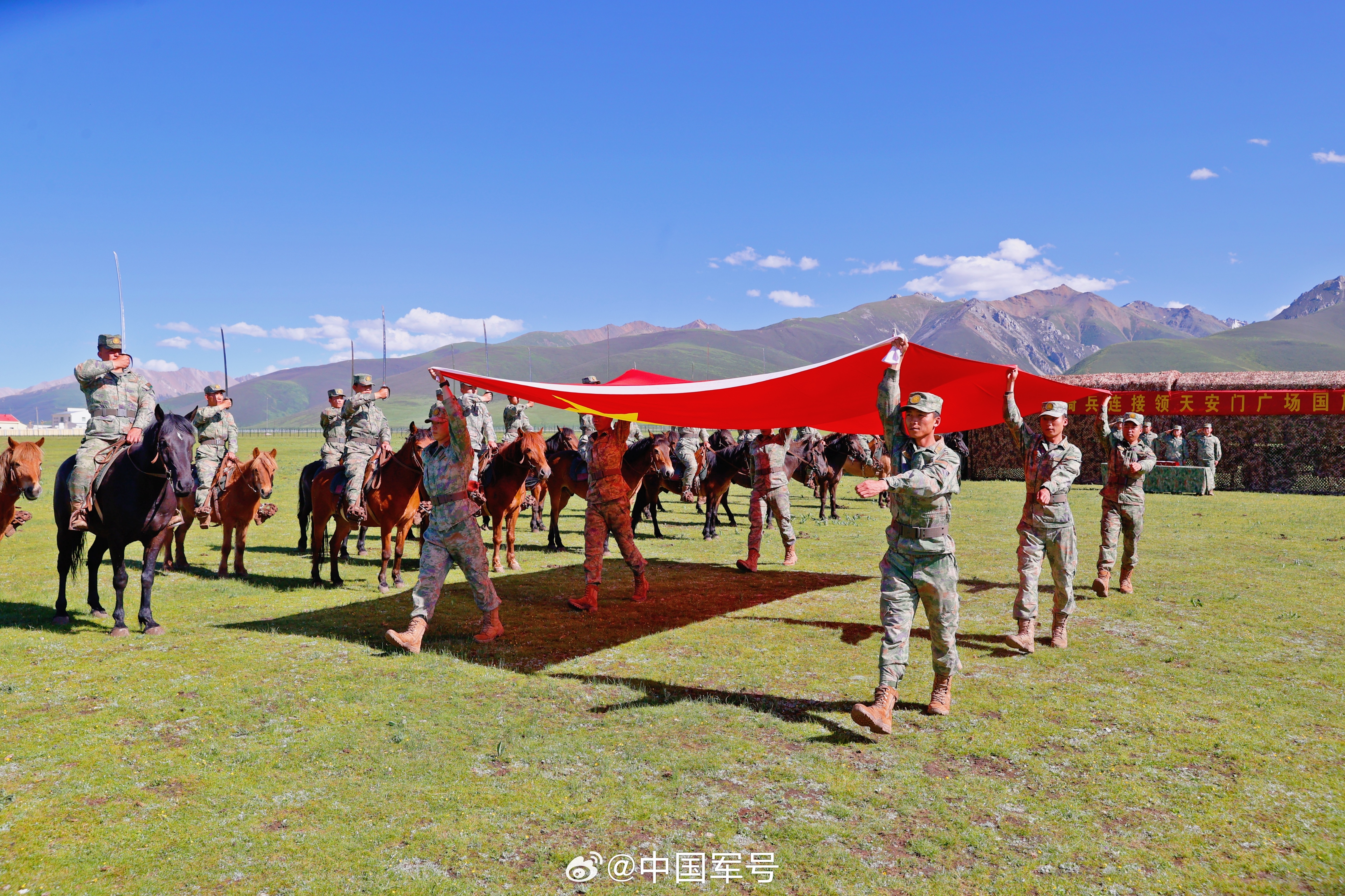 7月1日,玉树独立骑兵连举行接领天安门广场国旗仪式,骑兵战士们向国旗行举刀礼,迎接国旗。玉树独立骑兵连建连70多年来,先后荣立一等战功4次、集体一等功10次、集体二等功6次、集体三等功3次。向永远向胜利冲锋的玉树独立骑兵连致敬!