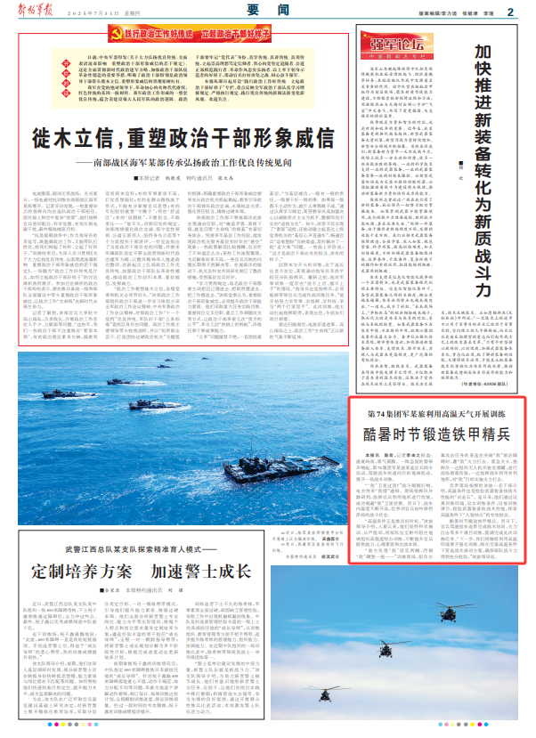 “高温条件正是练兵好时机。”该旅领导介绍,入夏以来,他们坚持科学施训、从严组训,将部队拉至野外陌生地域组织高强度综合训练,不断提升官兵耐热能力、心理素质和实战本领。