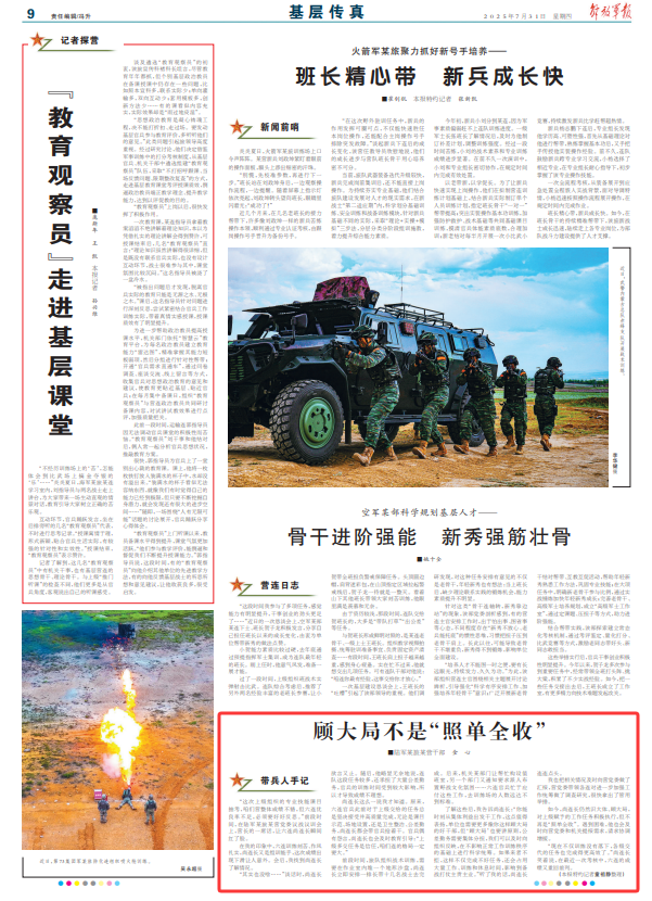 如今,尚连长仍然识大体、顾大局,对上级赋予的工作任务积极执行,但不再是“照单全收”。遇到困难,他也会及时向营党委和机关提报需求,请求协调增援。