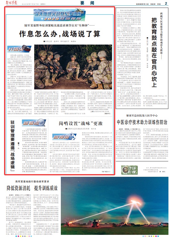 一支时刻想着打仗的部队,头脑里不会存在“空白时间段”与“视野盲区”。从作息时间依战斗节奏而定,到岗哨设置以实战需求为准,部队的实践告诉我们,实战化的驻训管理,才能推动野外驻训从“换个地方训练”向贴近真实战场的战斗锤炼转变。
