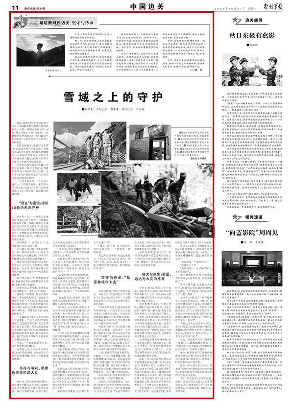 守护,形式各异,却内核相通。如同一场没有终点的接力,在雪域高原上,在一茬茬官兵心中,在军嫂和军娃心中,深深扎根,静默生长,绵绵不绝。