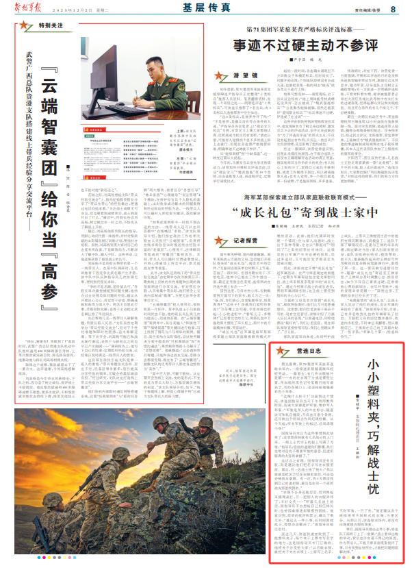 事后,国指导员借由这件小事,给连队干部骨干上了一堂课:“战士看似出格的举动,背后也许有着不得已的原因。作为带兵人,不能只看表面现象批评了事,只有找到症结所在,才能把问题彻底解决掉。”