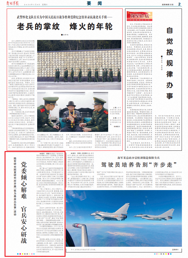“稳心才能安心,安心方能尽心。为基层科研人员办实事、解难题,是党委机关的应尽之责。”该研究所领导介绍,他们秉持“基层至上、服务科研”理念,聚焦官兵急需、关注度高、获得感强的事项,下大力开展“我为基层办实事”活动,推进解决科研人员遇到的急难愁盼问题,让大家能够心无旁骛开展科研攻关。