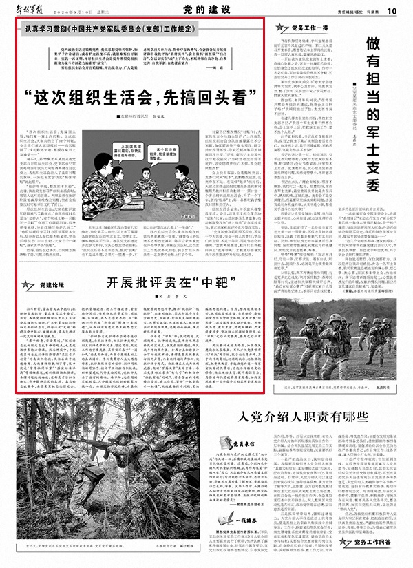 那次组织生活会,大家的批评意见既接地气又戳痛点。“你抓训练时总爱当‘老好人’,对个别战士睁一只眼闭一只眼”“你对工作跟踪问效、指导帮带不够,导致这项任务多次返工”“你组织理论学习时为图省事照本宣科,结合身边人身边事不够紧密,党员听得犯困”……当时,大家个个“领账”,并承诺尽快“销账”。