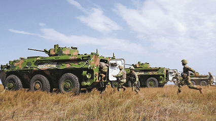 ▲“刘老庄连”远赴南苏丹执行国际维和任务,官兵进行班组战术动作课目训练