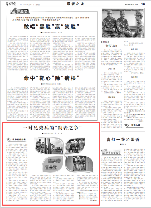 看着我俩胸前几乎一模一样的“荣誉墙”,母亲笑得合不拢嘴。我的思绪,也被拉回到与弟弟在军营里一路“较劲”、并肩成长的青葱岁月。