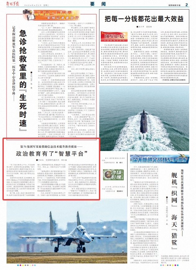 为此,该旅着手打造政治教育云平台。实践中,他们将智慧视窗、电子板报等终端设备通过内部网络串联起来,建立“终端链”;搭建在线精品案例库、教育资源数据库,供各营连政治教员参考,优化“资源链”;借助人工智能等技术,实现教案辅助生成、授课效果评估等功能,完善“教学链”。