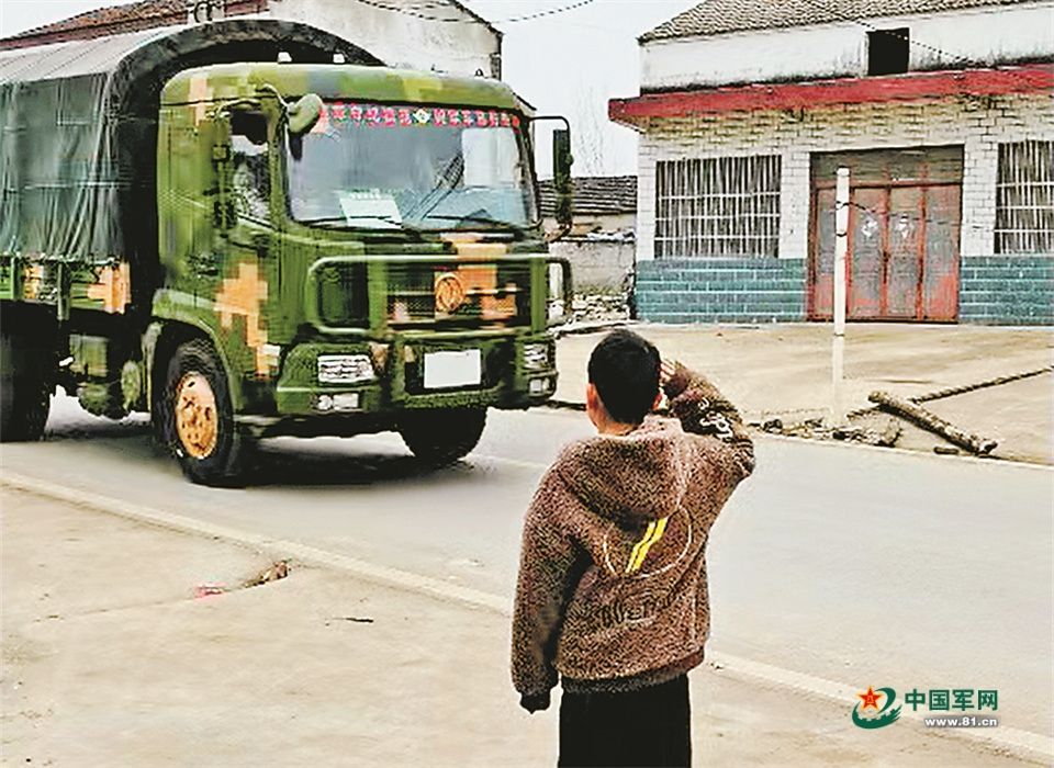 见状,车队放慢行驶速度鸣笛“回礼”。驾驶最后一辆军车的二级上士成广通,还通过车载扩音喇叭向这个可爱少年问好——