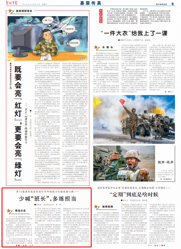 “带兵人越是大包大揽,战士越容易缺乏担当勇气。”复盘反思,该连干部意识到,干部骨干过度关心,很容易导致年轻战士产生惰性和依赖心理,在无形中削弱他们独立思考、临机应变、自主处置的实战能力。
