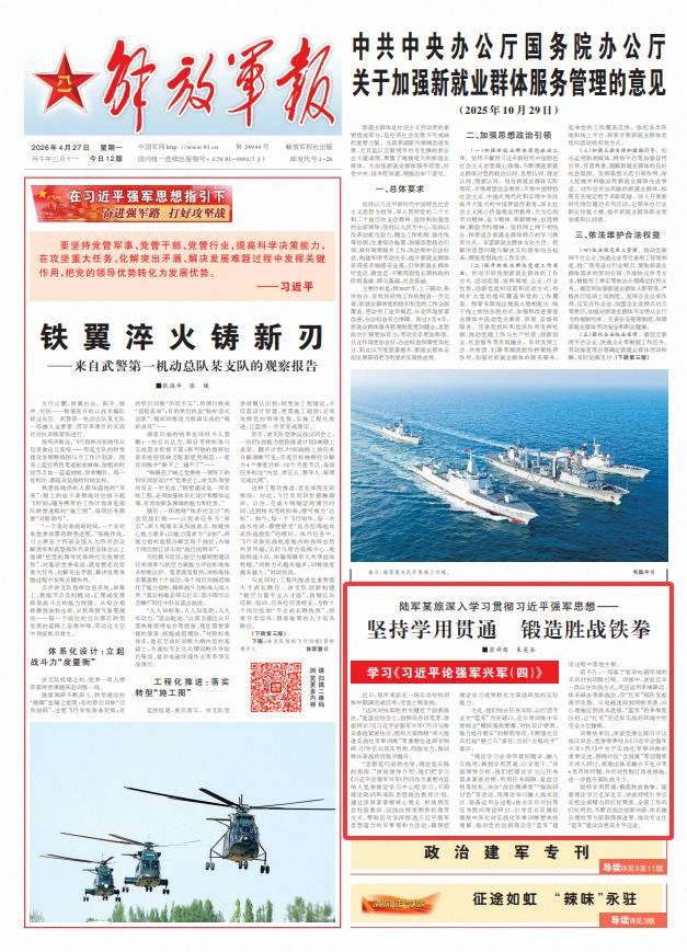 “思想是行动的先导,理论是实践的指南。”该旅领导介绍,他们把学习《习近平论强军兴军(四)》作为重要内容纳入党委理论学习中心组学习、干部理论轮训和部队思想政治教育计划,通过读原著掌握核心要义、析战例反思经验教训、议战法探索制胜机理等方式,帮助官兵学深悟透习近平强军思想蕴含的军事观和方法论,确保把理论学习成果转化为谋战研战的实际能力。