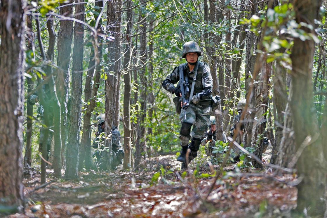 陆军第71集团军某旅“王杰班”在皖东腹地进行野外搜寻训练(2018年9月5日摄)。新华社发(李志浩 摄)