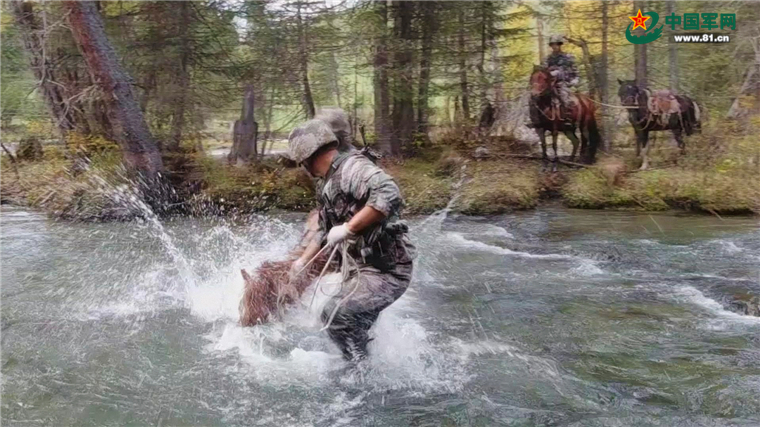 托洛姆托河是由雪山常年融化汇聚而成,河水冰冷刺骨,是巡逻必经的一条河。河宽约20米,中间有个河滩将河水一分为二,河滩离水的高度让这匹小军马害怕了起来,无论周文怎么鼓励它,小马也不敢向前迈进一步。为了帮助这匹小军马克服恐惧顺利过河,班长吕文强跳入冰冷的河水中,给队员们一个个牵马,想通过这样的方式给小马做一个示范。