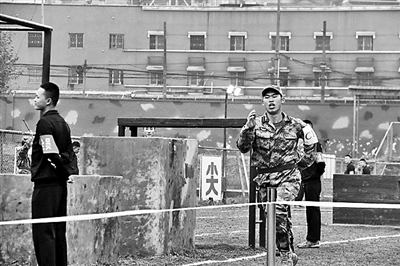下了障碍场,张鹏飞行走困难,当大家认为他会退出余下考核项目时,他却毅然走向战术竞赛场,并成功爬进了20秒以内。接下来还有比赛项目,大家看到他脸色苍白、直冒虚汗,纷纷劝他停止参赛,他却微笑着一再摆手:“我还行,我还能坚持!”