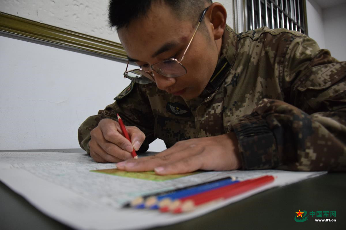 夜已经很深了,集训队的学习室内却还亮着灯,推开门,桌上一张张由红蓝彩笔勾勒的战斗决心图,是新排长刘硕今晚的成果。他轻轻吹了吹尚未晾干的题头字,似乎不太满意自己刚刚完成的标图作业,又拿起了铅笔,准备再来一次,这已经不知道是他第几次鏖战至凌晨了。