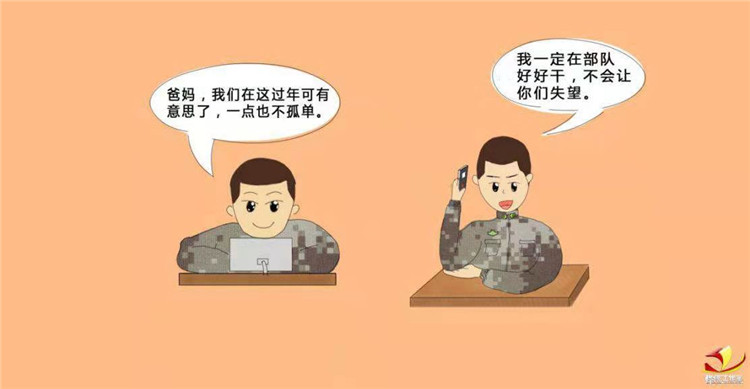 过年当然还要给家里打个电话拜年啦!给父母和亲朋送上新年问候与祝福:“爸妈,放心吧,我在部队过得很好!这个春节儿子不能在你们身边,你们一定要多保重!”