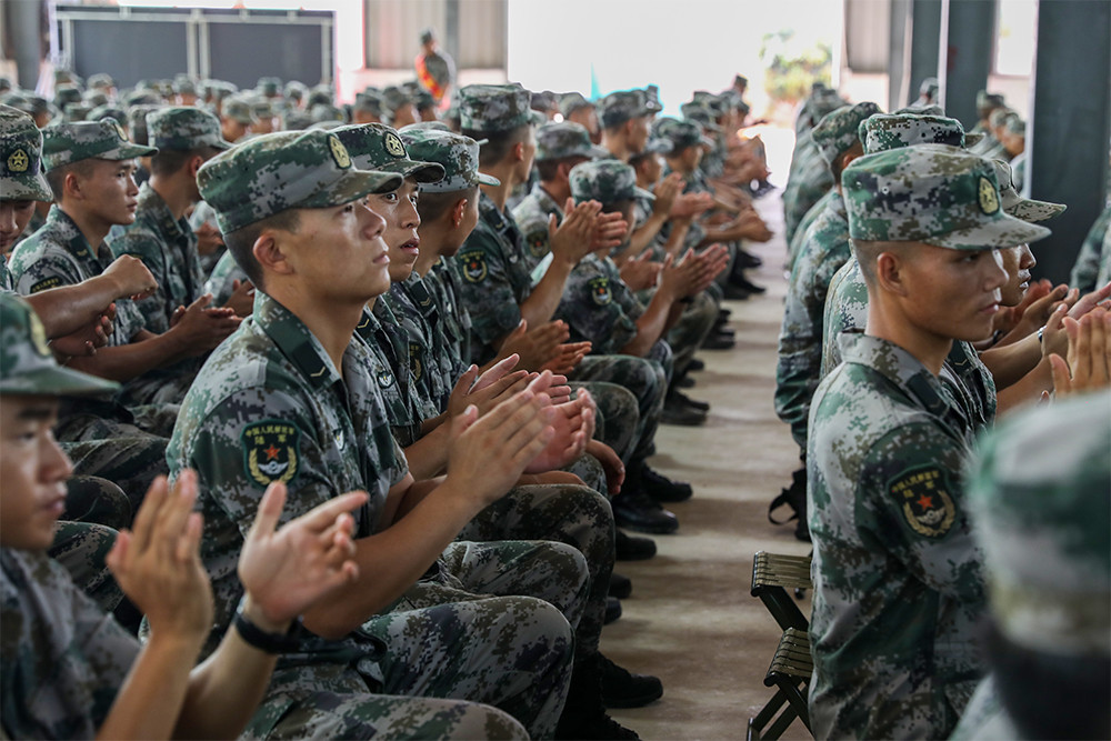 慷慨激昂,扣人心弦。动情演讲感染着台下官兵。