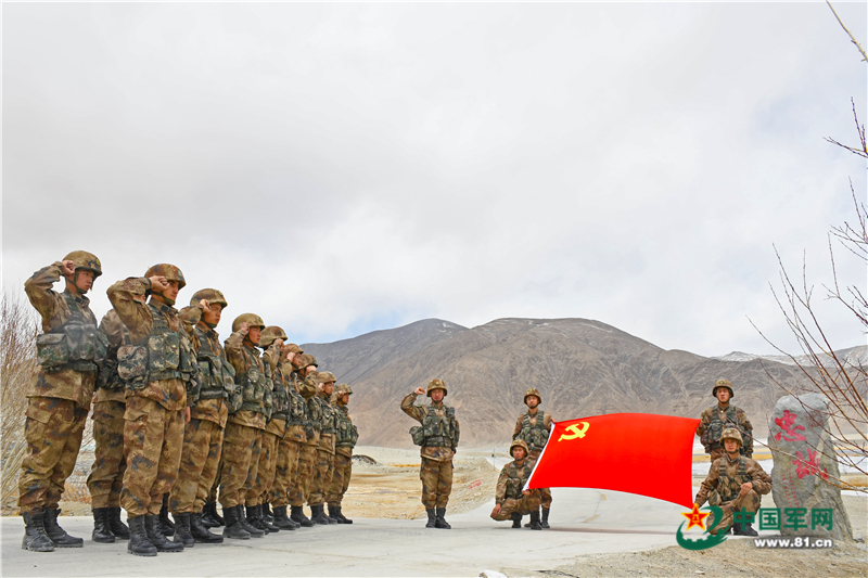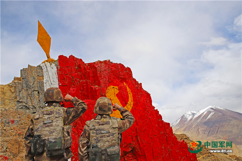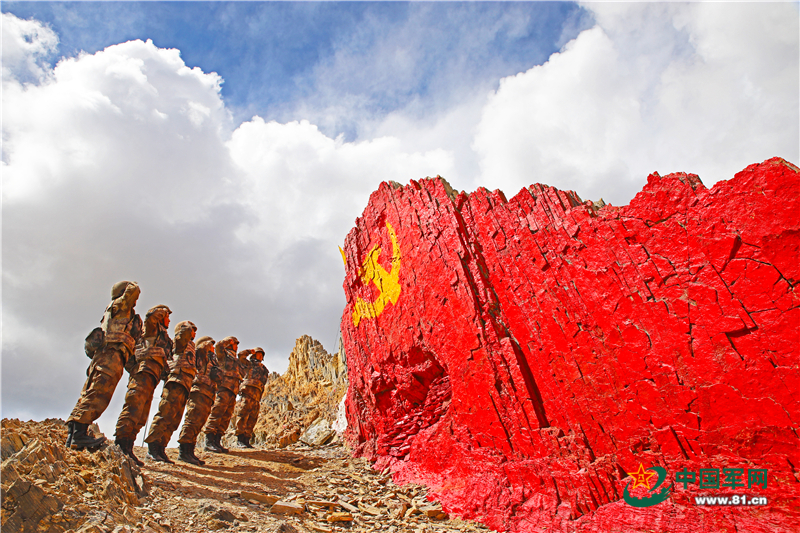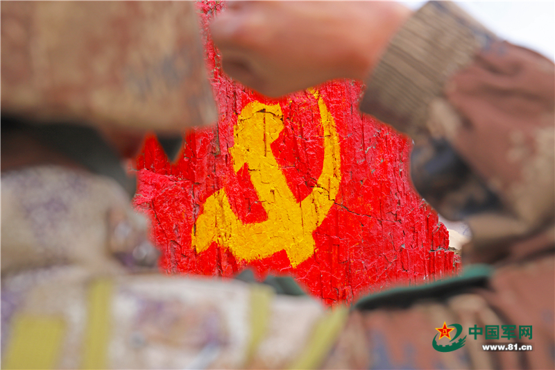 在这个巨大的、飘扬的旗帜状的山体面前,队员们举起紧握的右拳:“我是中国军人,听从党的领导……党旗所指,万死不辞!”高声呼出这段特殊的誓言后,战士们自发绕山一圈,以表达卫国戍边的决心。