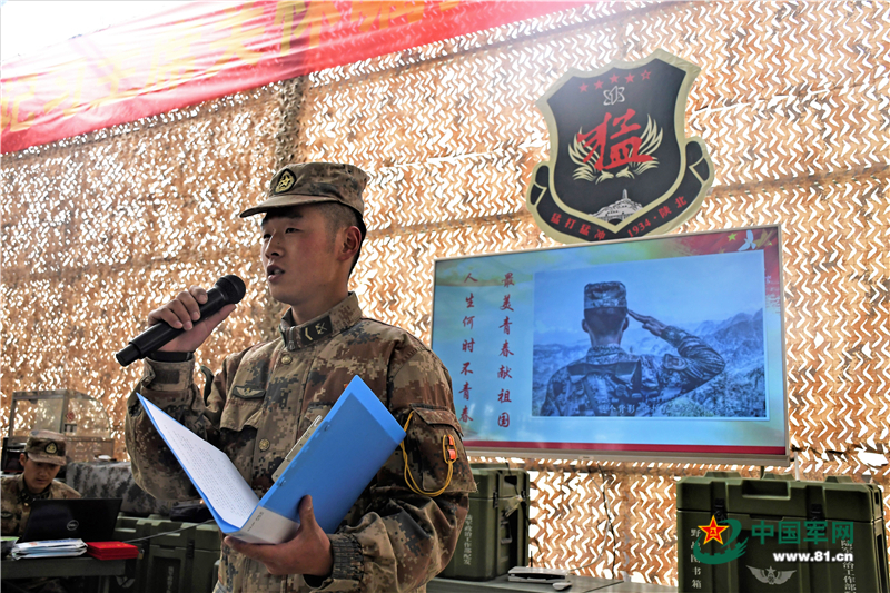 “人生何时不青春,最美青春献祖国”,中士侯翰斌作为初上高原的一员,正慷慨激昂地讲述着驻训以来,自己5次申请来哨所的故事。“我要像不朽的胡杨一样,同陈祥榕烈士并肩,在高山雪域生出坚韧的根!”列兵肖怀旖激动地说道。