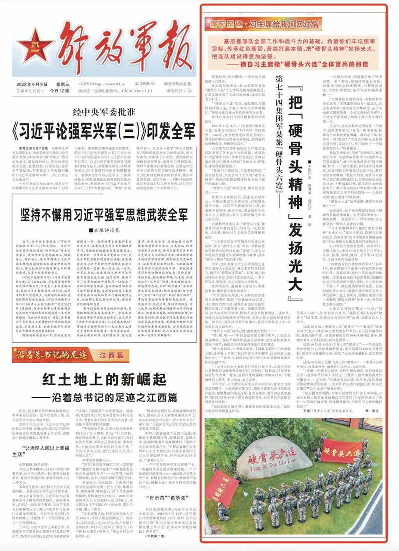 ——摘自习主席给“硬骨头六连”全体官兵的回信