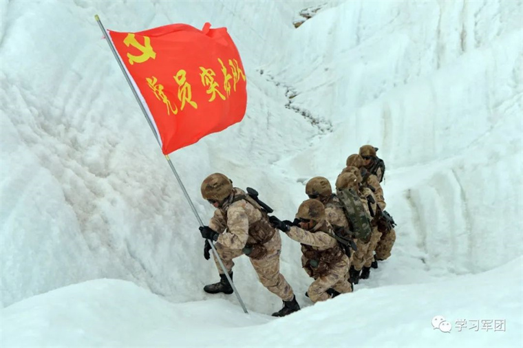 气温太低,官兵的棉帽和脸冻在一起;氧气稀薄,有的官兵站立不稳……太阳露头时,在风雪中奋战了一整夜的官兵,终于到达雪山顶上的任务点位。连长姜臣领说:“祖国需要我们去的地方,就是拼命也要按时到达。”
