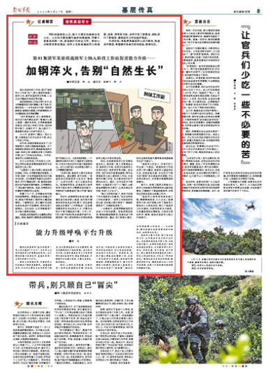“高级军士培养使用是系统工程,需要精准规划、久久为功。”该旅领导介绍,他们细致分析了高级军士群体的人才结构状况,制订了高级军士队伍建设、年度考核有关方案等,为其量身规划发展路径,力争走开更加科学、精准、高效的高级军士能力升级路子。