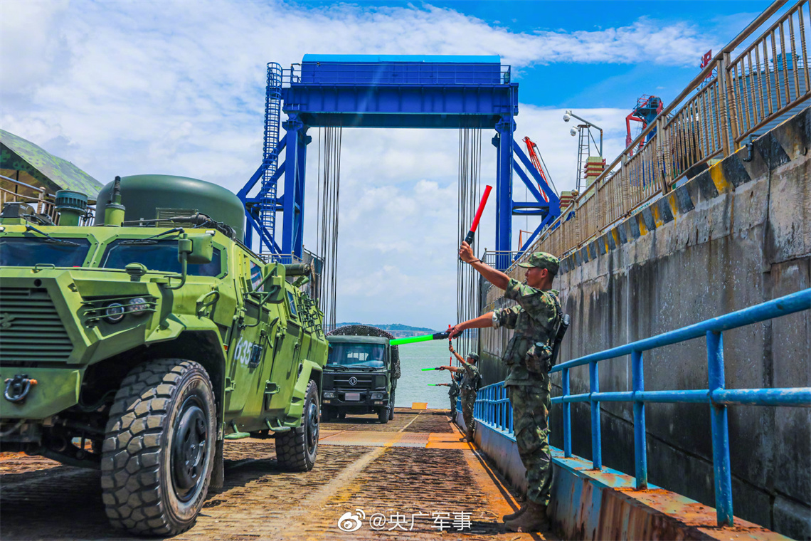 近日,陆军第73集团军某旅联合海军某舰艇大队在某海域开展兵船合练,重点围绕车辆装卸载、海上射击、抢滩登陆等课目组织训练,检验部队远程投送、海上作战能力。