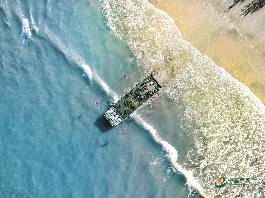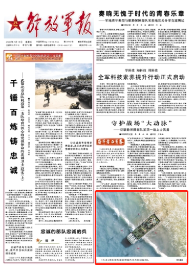 7月上旬,东部战区陆军某旅组织两栖装甲分队开展海上编波训练。谢权鑫摄