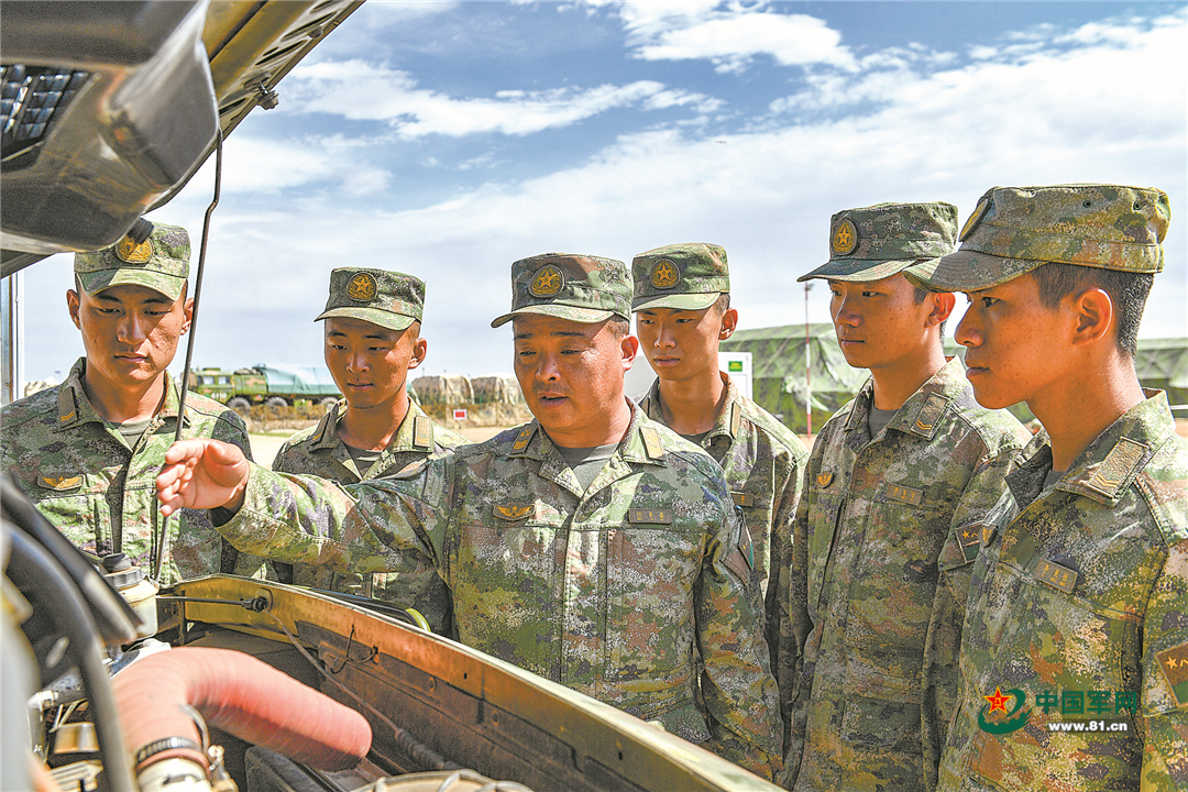 一级军士长任亚磊(左三)为新晋驾驶员传授维修技术。王 鹏摄