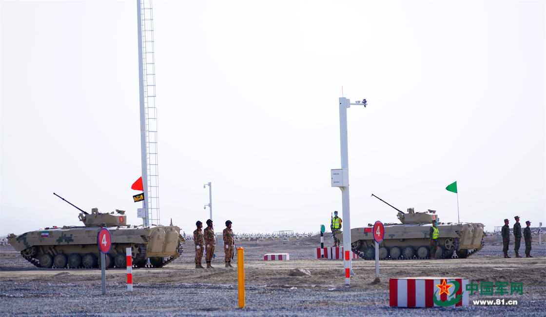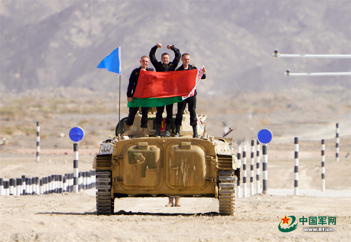 白俄罗斯参赛队驾驶步战车疾驰在赛道上。罗兴仓 摄