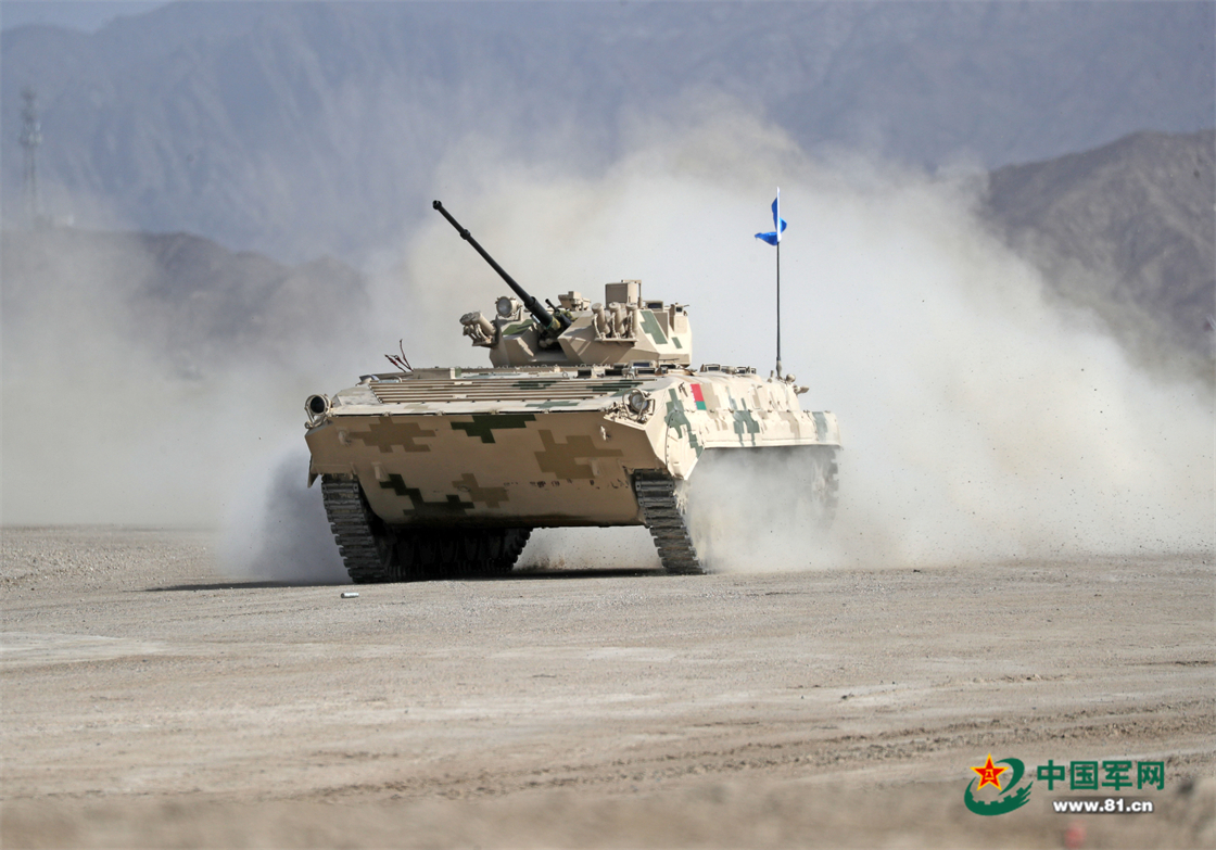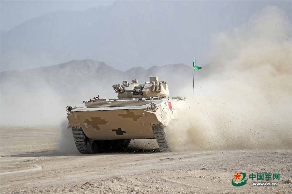 中国参赛队驾驶步战车疾驰在赛道上。罗兴仓 摄