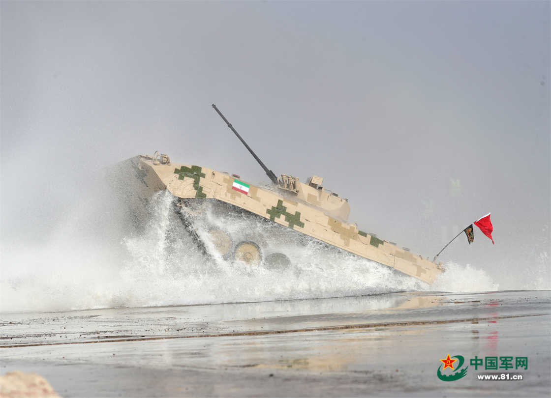 伊朗参赛队员驾驶步战车通过涉水场。李硕勋 摄